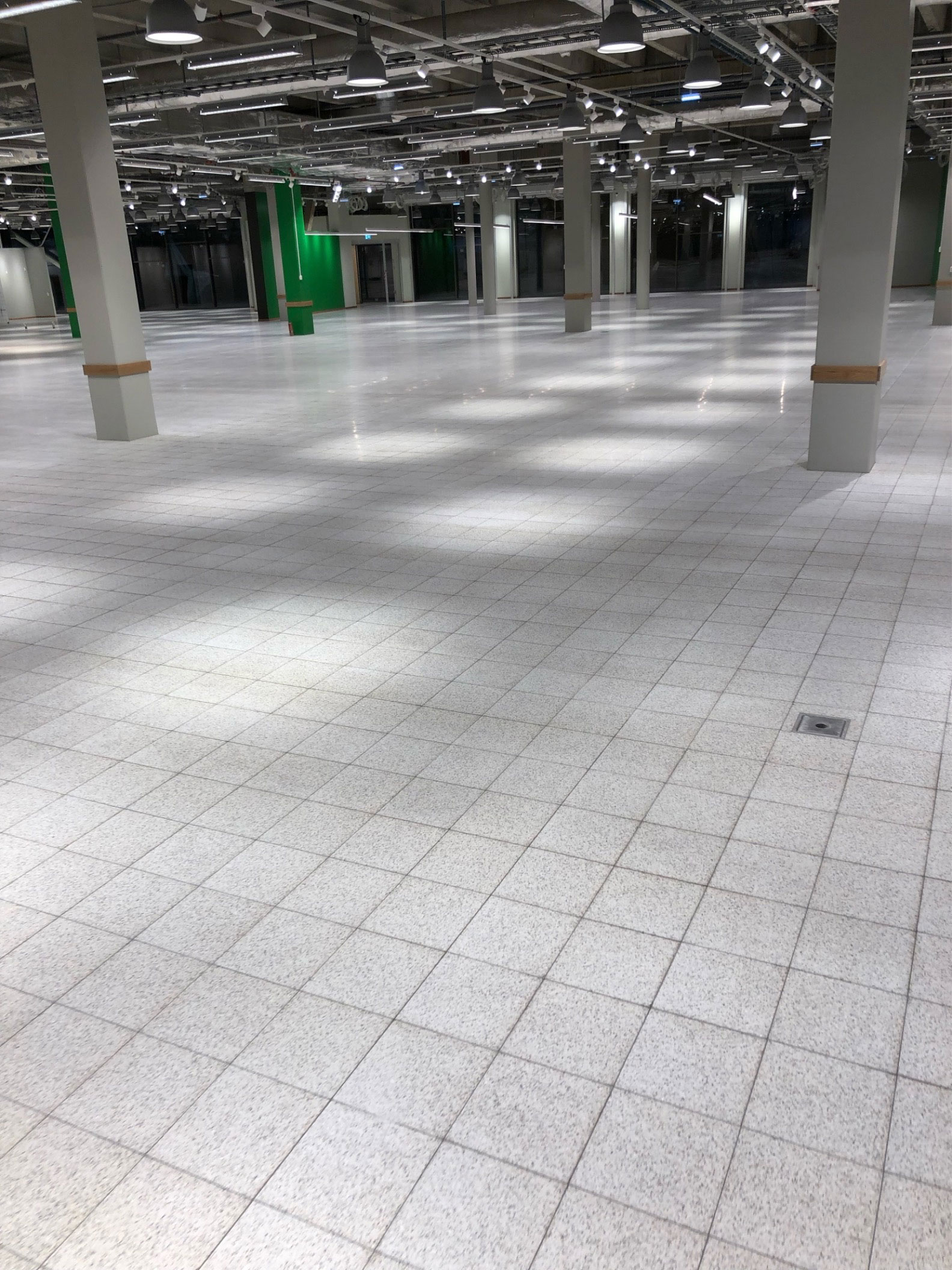 Skurning i 3 steg utförd efter terrazzoläggning där vi även impregnerat terrazzon för att få ett bra fläckskydd.